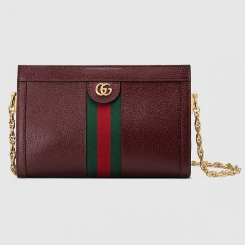Gucci Structured Shape Web Ophidia Small Shoulder Bag 503877 Leather Burgundy 2019