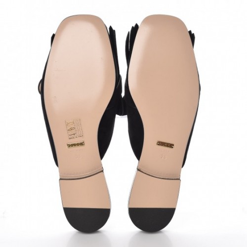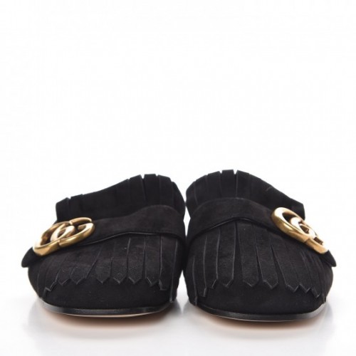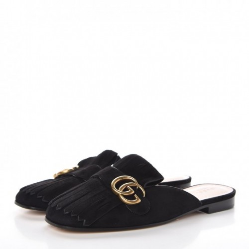 Gucci Suede GG Marmont Fringe Slippers Black