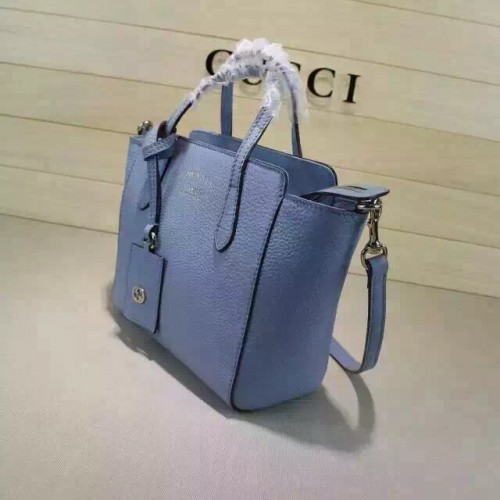 Size:21.5*20*11cma petite rendition of the gucci swing top handle is perfectly sized for compact style. the removable strap provides additional how-to-wear options.Blue leathernatural cotton linen liningembossed gold gucci trademarkremovable ID tag with interlocking G detailMini size: W21.5cm x H20cm x D11cmMade in ItalyDouble handles with 7.5cm dropAdjustable and removable shoulder strap with 49cm dropTop zip closureInterior zip and smartphone pockets