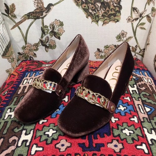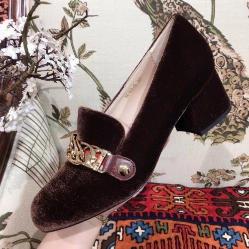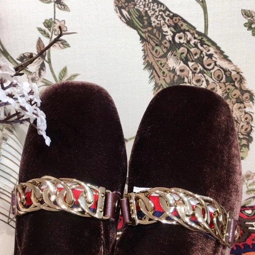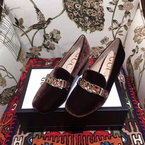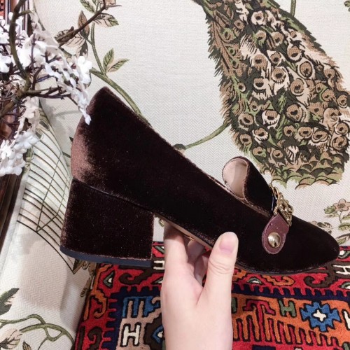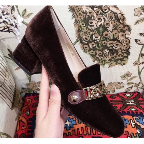 Gucci Sylvie Chain Velvet Mid-Heel Pumps Coffee