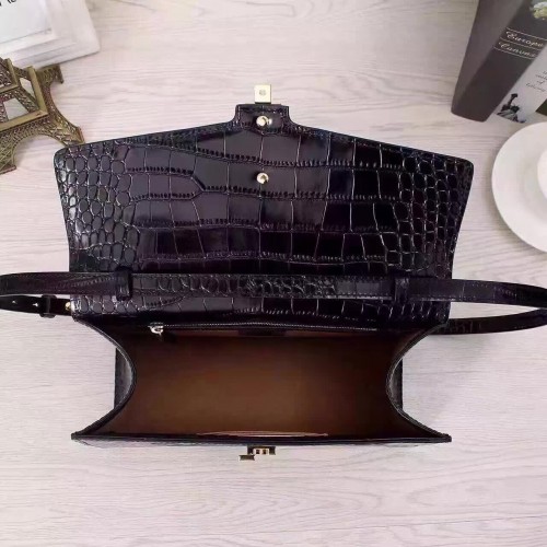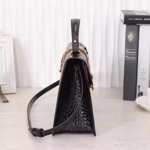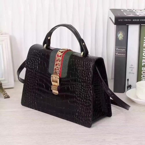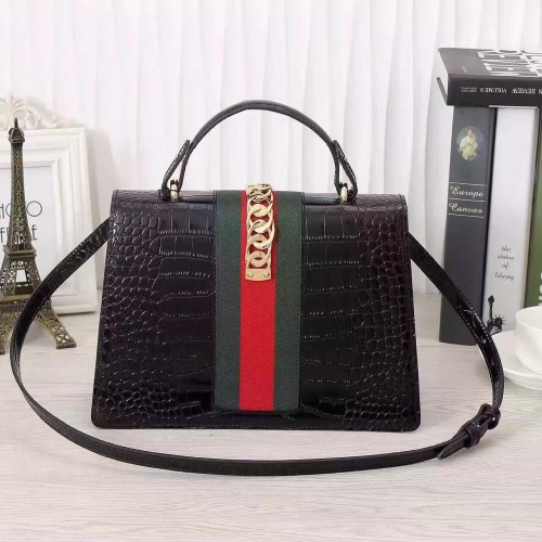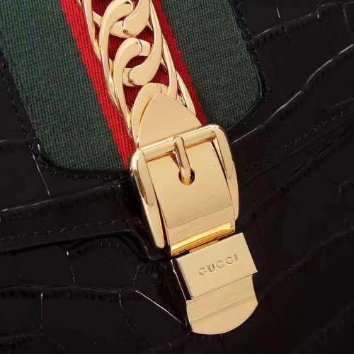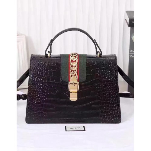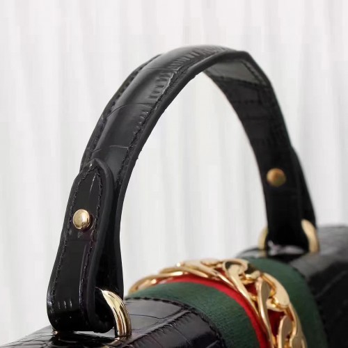 Gucci Sylvie crocodile pattern top handle bag 431665 Black