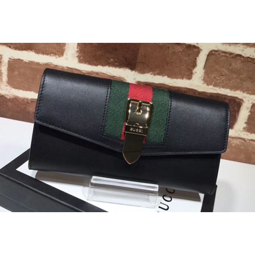 Gucci Sylvie Leather Bi-Fold Wallet 476084 Black
