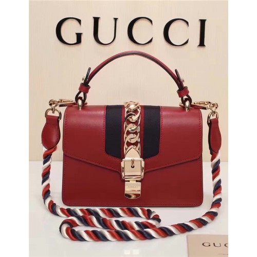 Gucci Sylvie leather mini handbag 421883 Red(ENYI-722202)