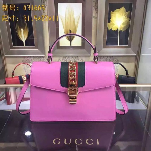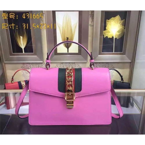 Gucci Sylvie leather top handle bag 431665 in pink leather