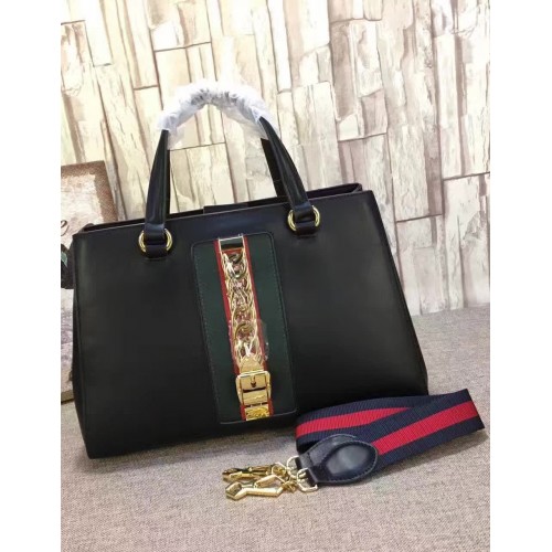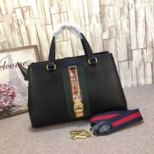 Gucci Sylvie leather top handle bag 453790 Black(KDL-722707)