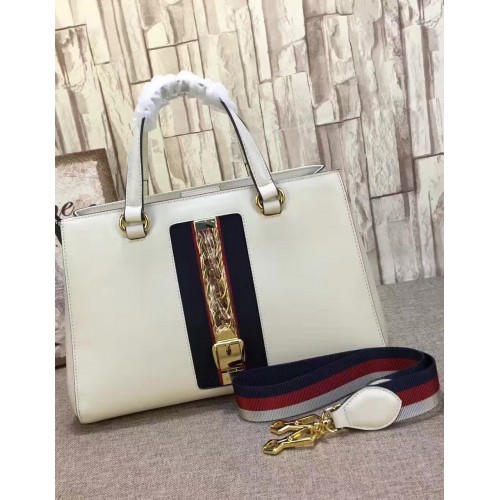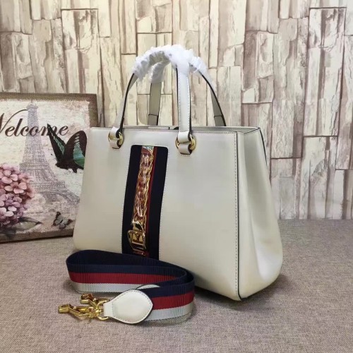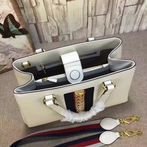 Gucci Sylvie leather top handle bag 453790 White(KDL-722708)