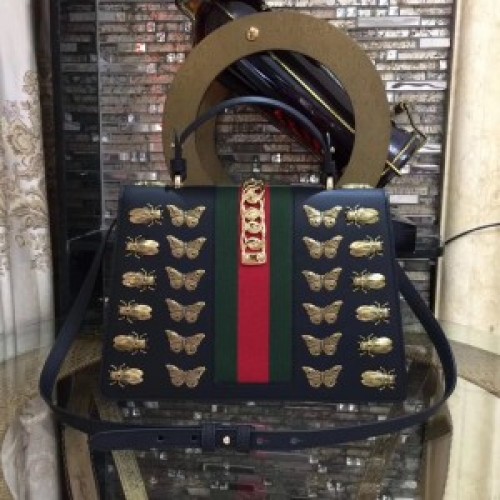 Tags: Gucci Sylvie leather top handle bag black, 431665, Sylvie bag