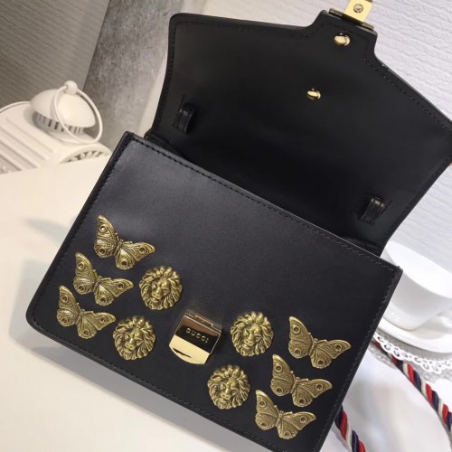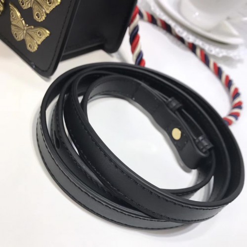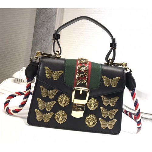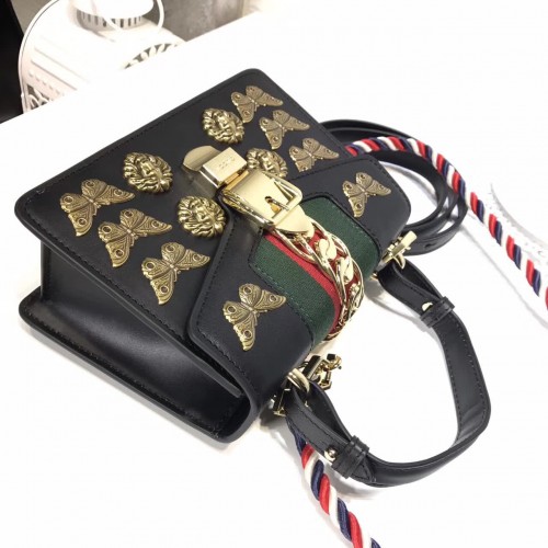 Gucci Sylvie Metal Animal Insects Studs Leather Top Handle Mini Bag 470270 Black 2017