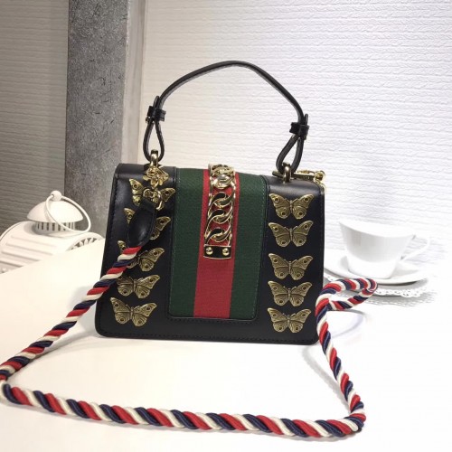 Gucci Sylvie Metal Animal Insects Studs Leather Top Handle Mini Bag 470270 2017