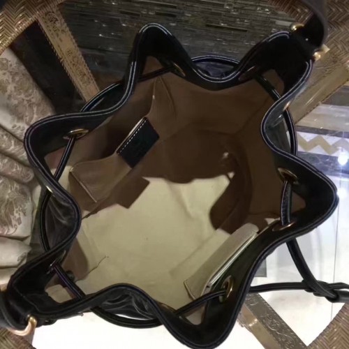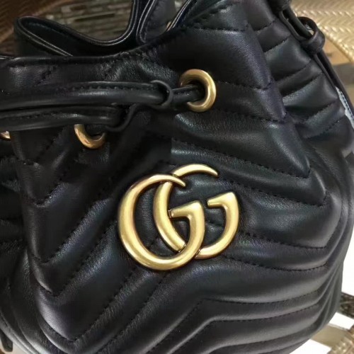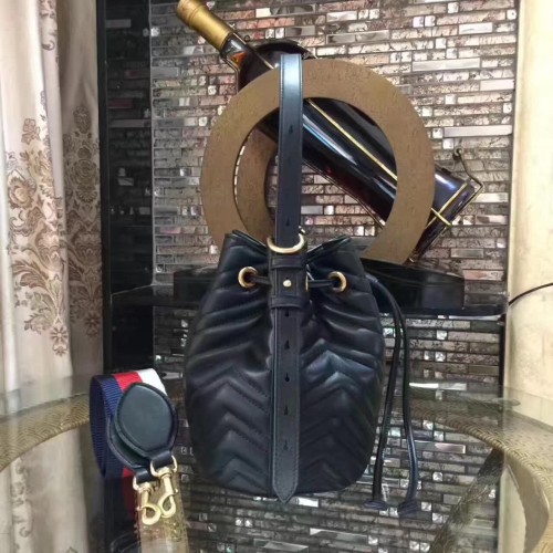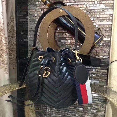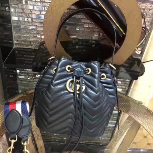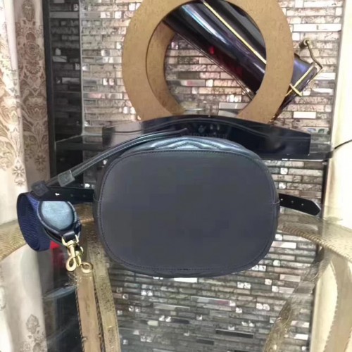 Gucci Sylvie Web Strap GG Marmont Chevron Quilted Leather Bucket Bag 476674 Black 2017