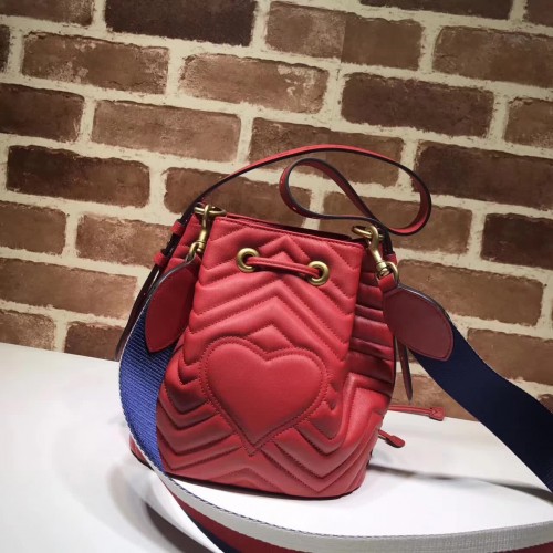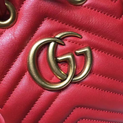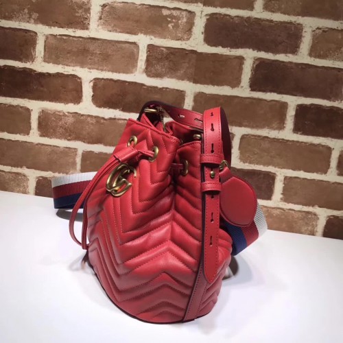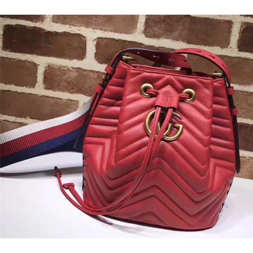 Gucci Sylvie Web Strap GG Marmont Chevron Quilted Leather Bucket Bag 476674 Red