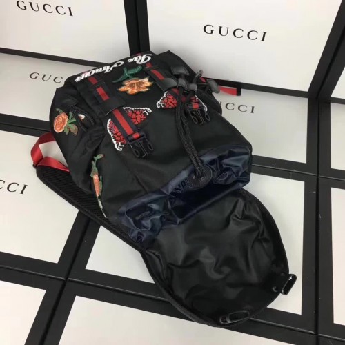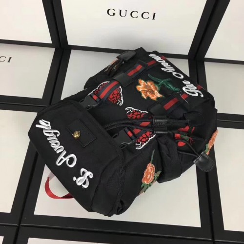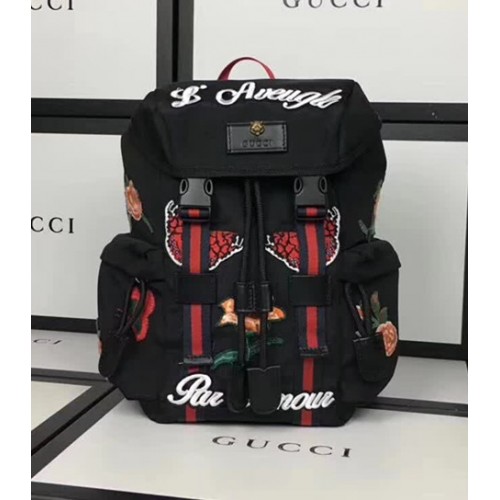 Gucci Techno Canvas Techpack Backpack Bag 478327 Embroidered Flowers Black 2017