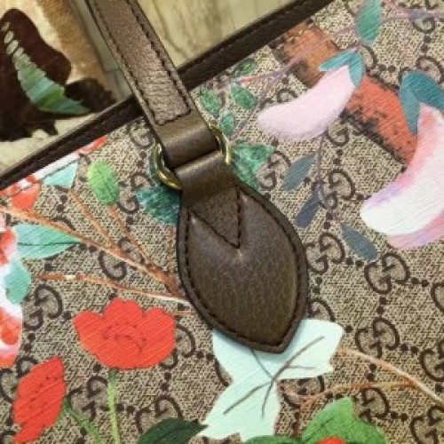 A tote with detachable leather shoulder strap made in soft GG Supreme with Tian print. The Gucci Tian print features a contemporary floral motif inspired by Chinese landscapes depicted on 18th-century tapestries and screens. The floral pattern is made up of flowers, insects and birds-including dragonflies, butterflies and hummingbirds. The plants and creatures are represented through light and quick brushstroke-style graphics, with a three-dimensional effect.