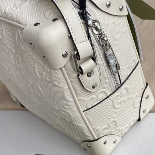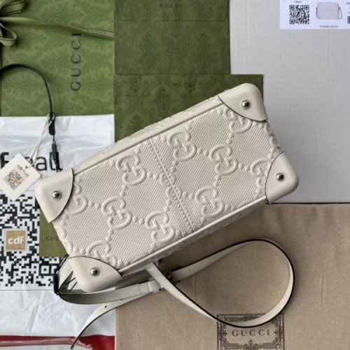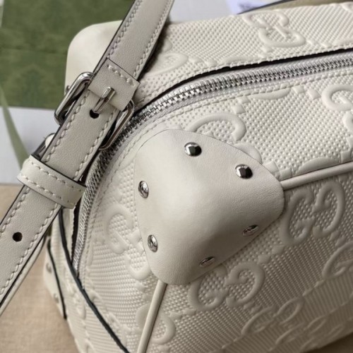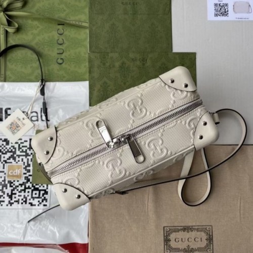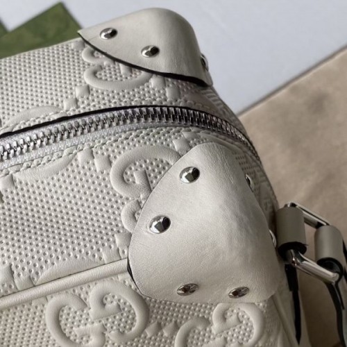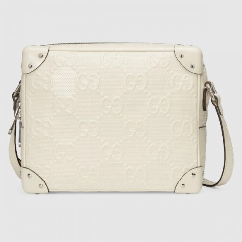 Tags: Gucci Trunks Messenger Bag In White GG Embossed Perforated Leather, ,