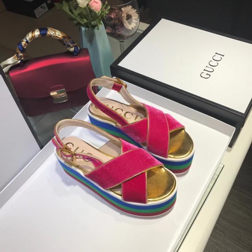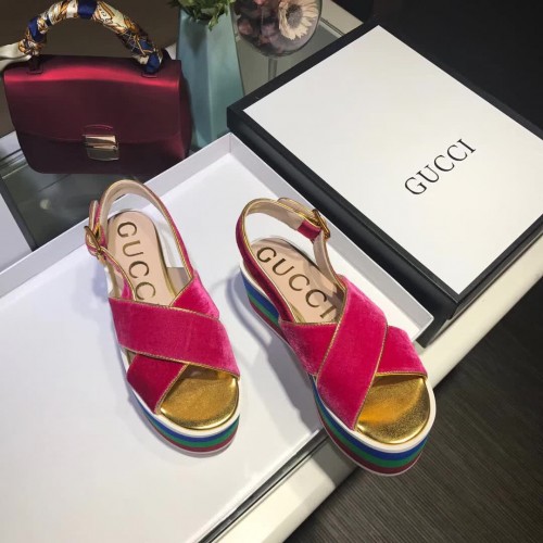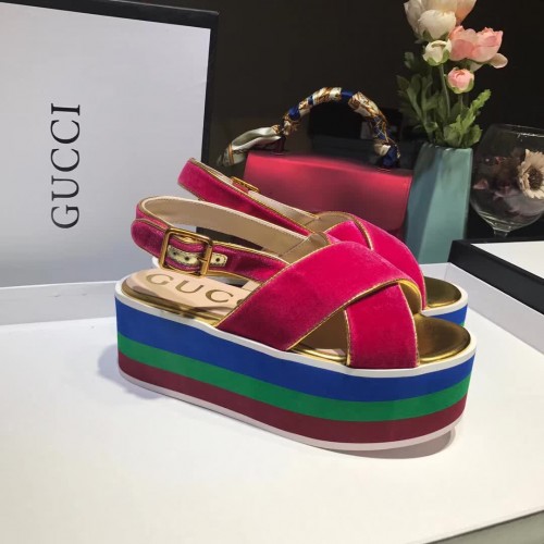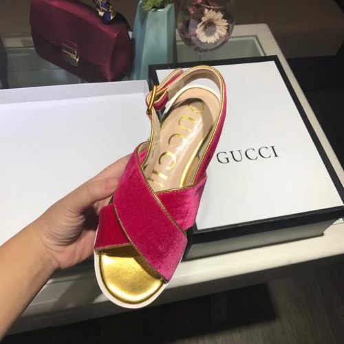 Gucci velvet crossover platform sandal ‎505333 Shocking pink 2018