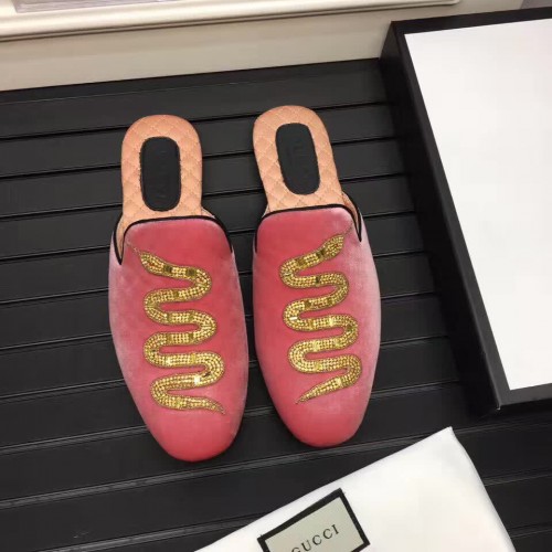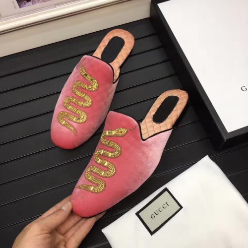 Gucci Velvet Crystal Embroidered Snake Evening Men's Slippers 459094 Rose 2017