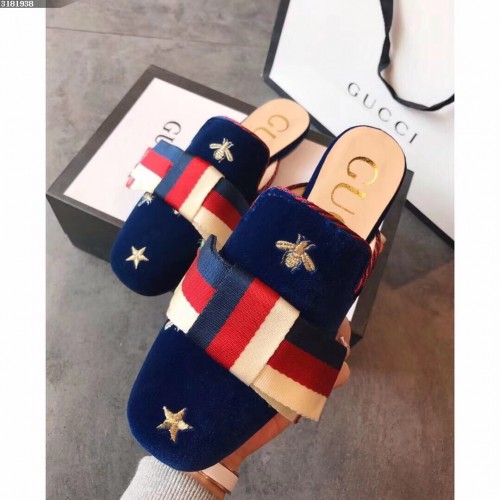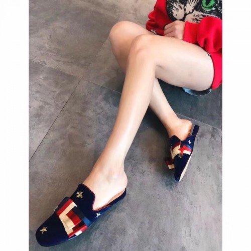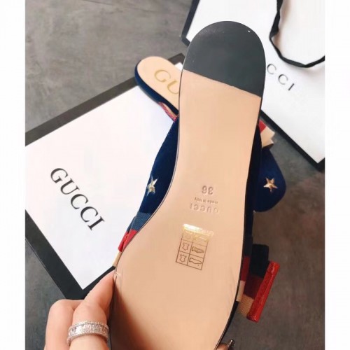 Gucci Velvet Embroidered Slipper With Sylvie Bow 496561 Blue 2018
