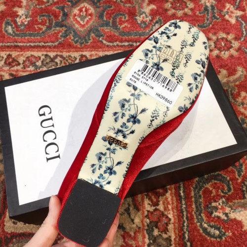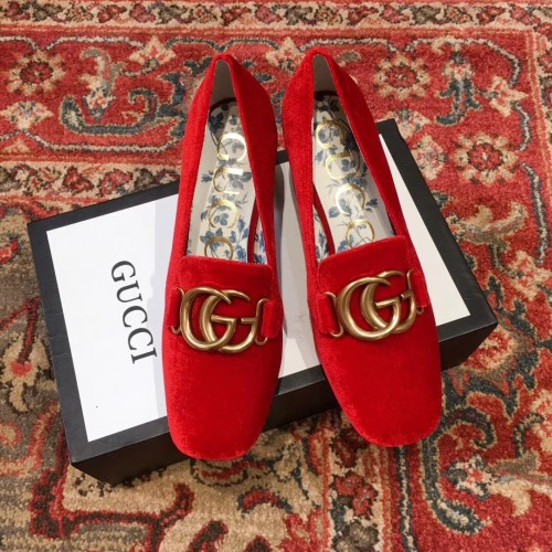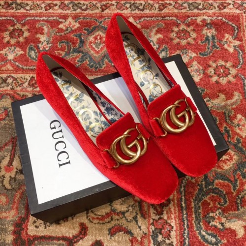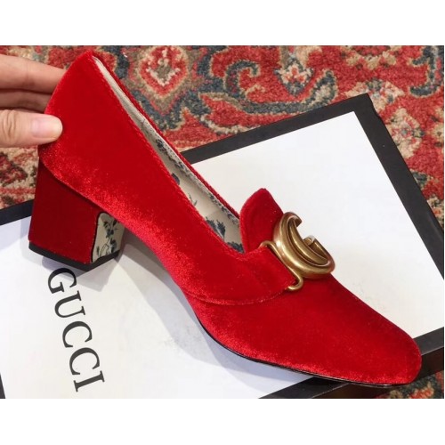 Gucci Velvet Mid-Heel Pumps Red with Double G 526465