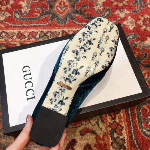 Gucci Velvet Mid-heel Pumps with Double G 526465 Blue 2018
