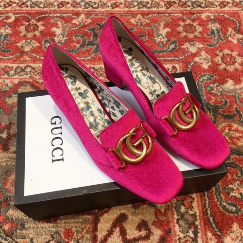 Gucci Velvet Mid-heel Pumps with Double G 526465 Pink 2018