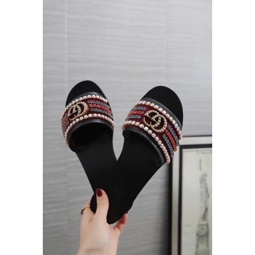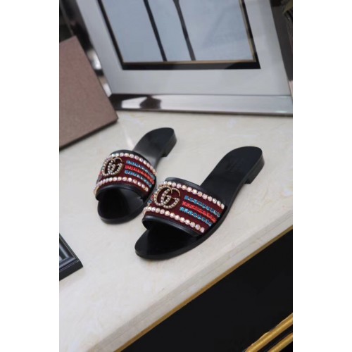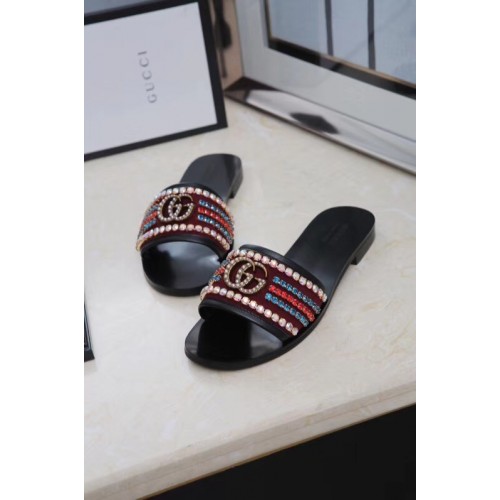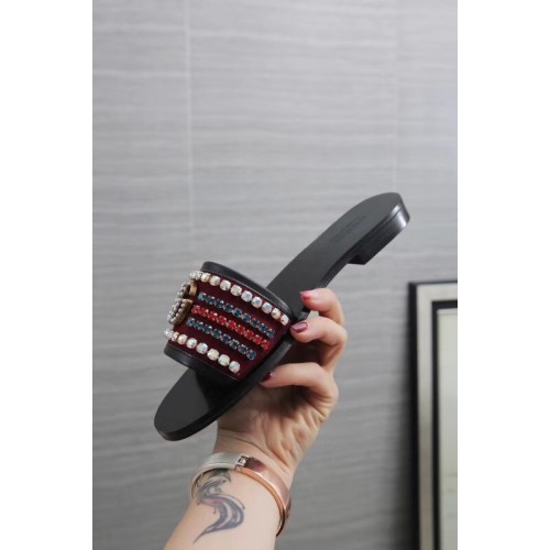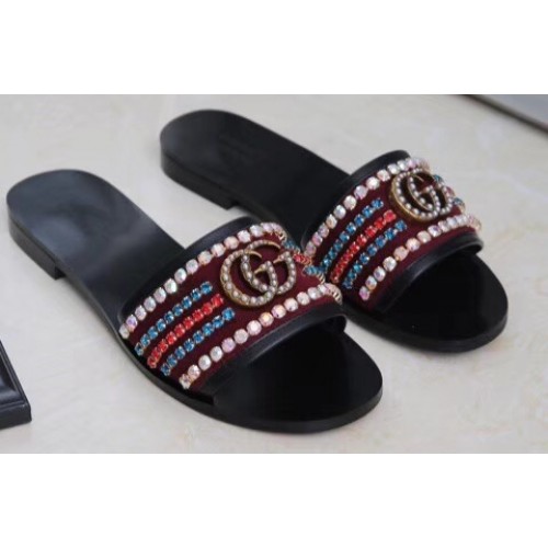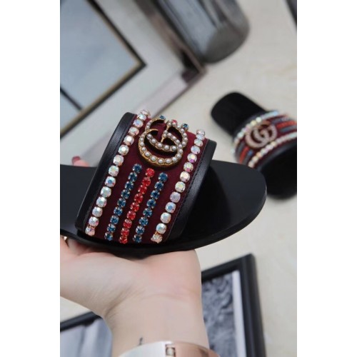 Gucci Velvet Slide Sandals With Crystals 525366 Burgundy 2019