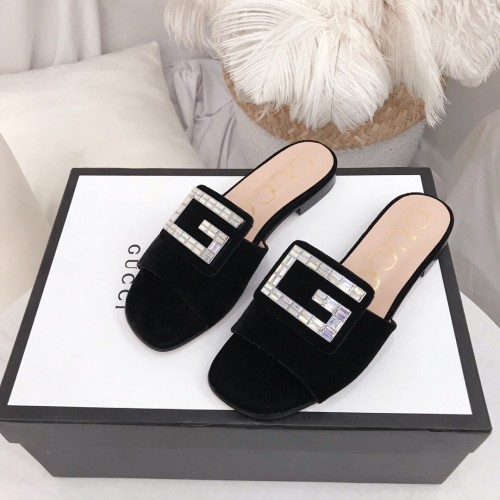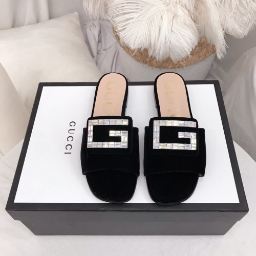 Gucci Velvet Slide with Crystal G 551445 Black 2018