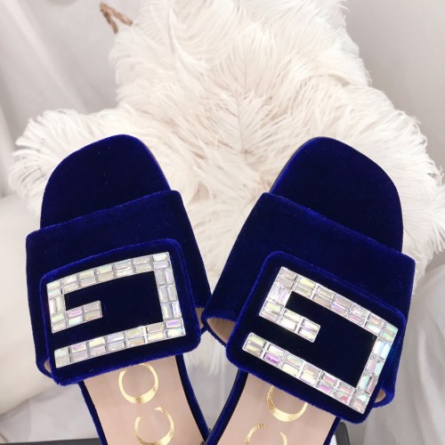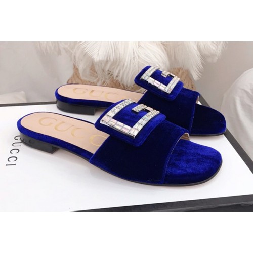 Gucci Velvet Slide with Crystal G 551445 Blue 2018