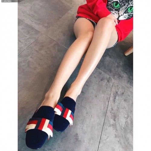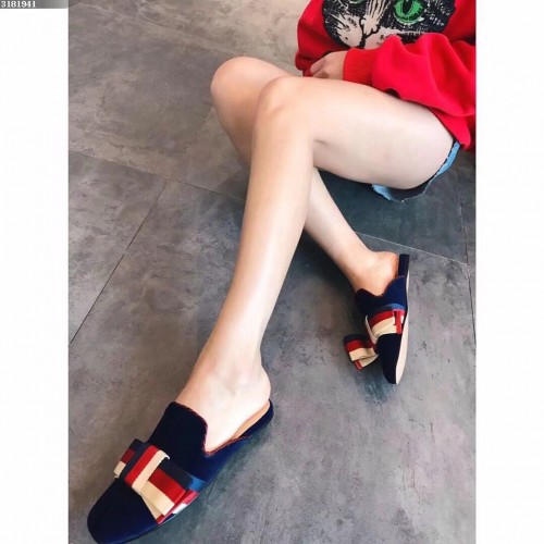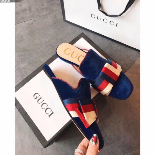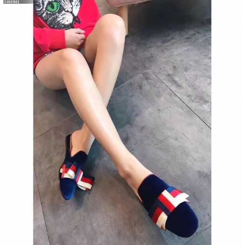 Gucci Velvet Slipper With Sylvie Bow 496561 Blue 2018