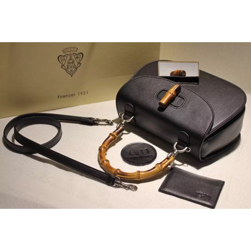 Gucci Vintage Leather Bamboo Top Handle Bag In Black With A Mini MirrorSKU:c16-38SIZE: 27*17*10 CM