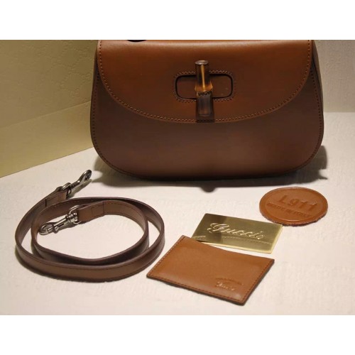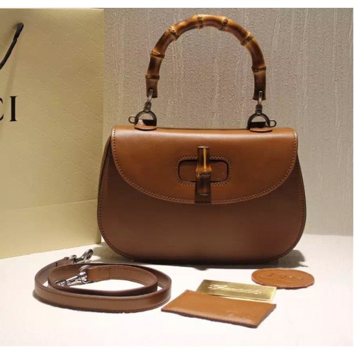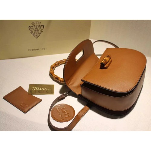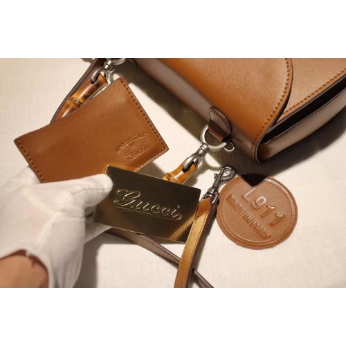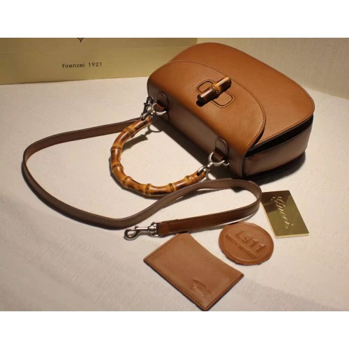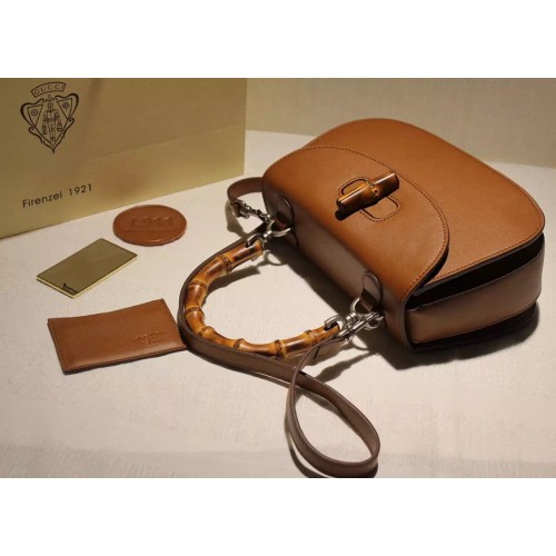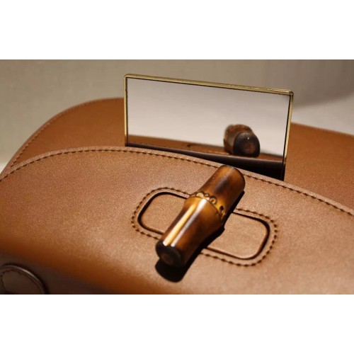 Gucci Vintage Leather Bamboo Top Handle Bag In Brown With A Mini MirrorSKU:c16-39SIZE: 27*17*10 CM