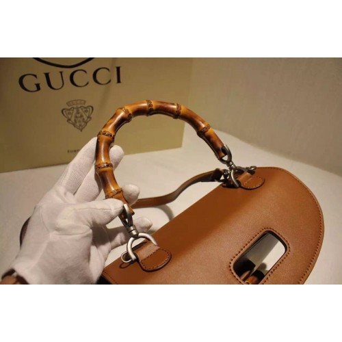 Gucci Vintage Leather Bamboo Top Handle Bag In Brown With A Mini Mirror