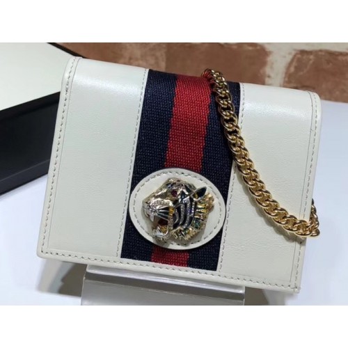 Gucci Vintage Web Rajah Chain Card Case Wallet 573790 Leather White
