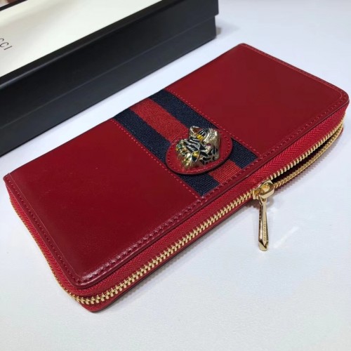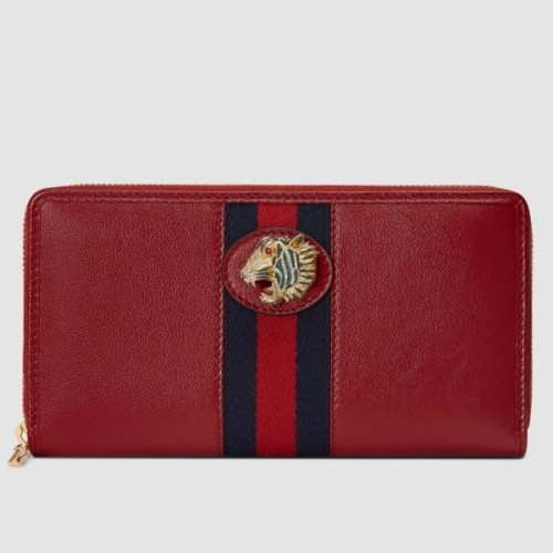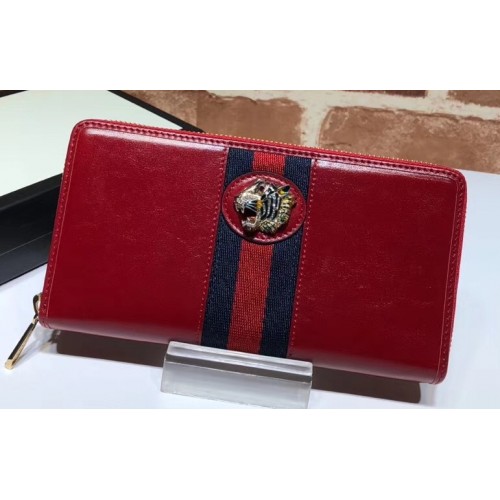 Gucci Vintage Web Rajah Zip Around Wallet 573791 Leather Red
