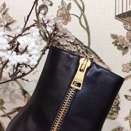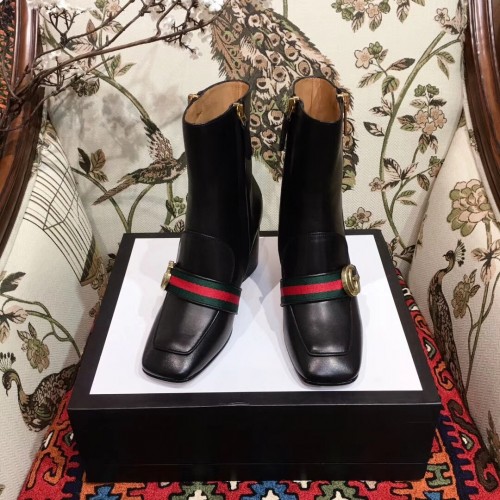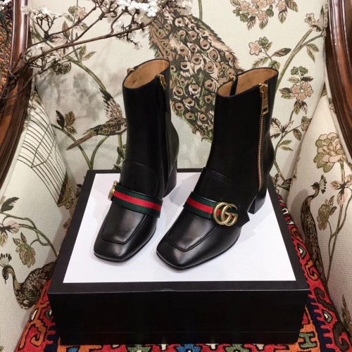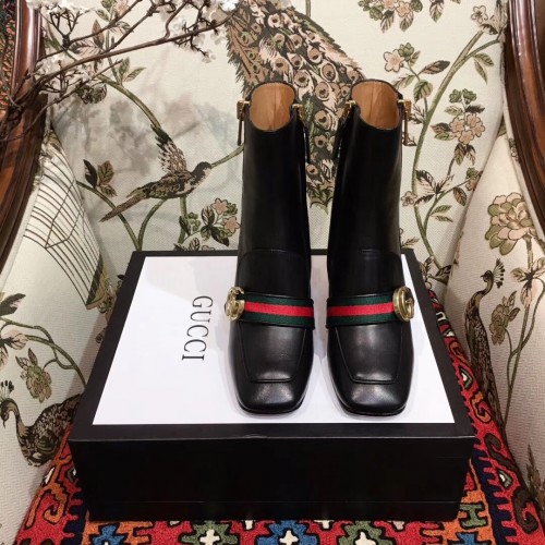 Gucci Web and Double G Leather Mid-heel Ankle Boots Black 2018