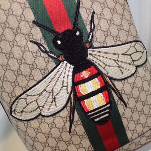 - Beige/ebony GG Supreme canvas, a material with low environmental impact, with green and red Web and embroidered bee appliqué