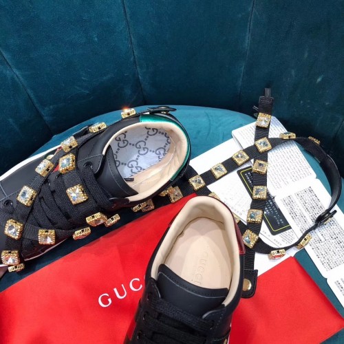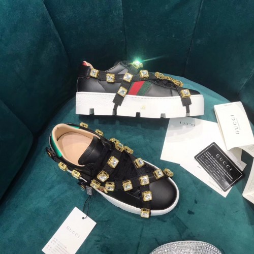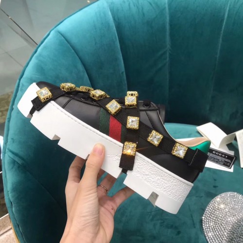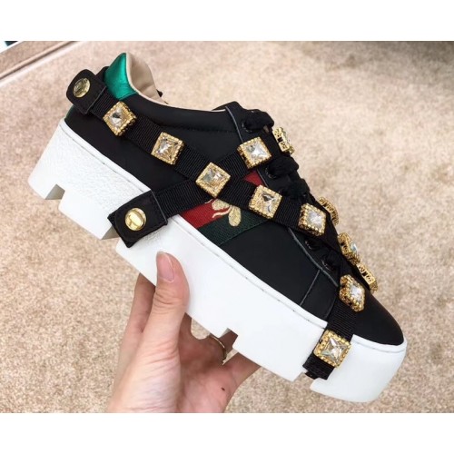 Gucci Web Bee Ace Platform 4cm Sneakers Black with Removable Crystals 2019