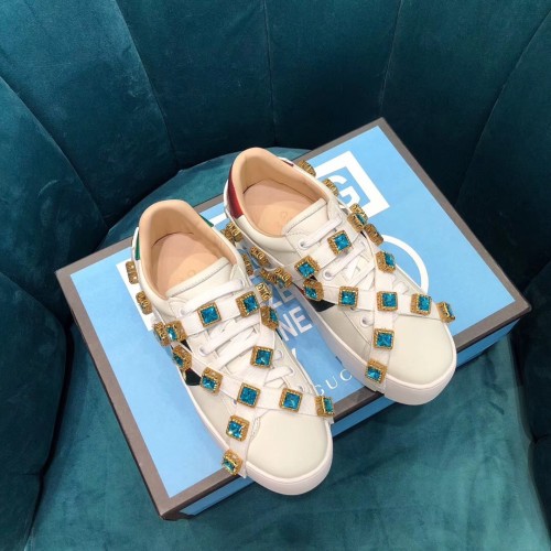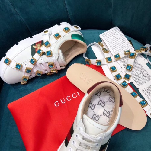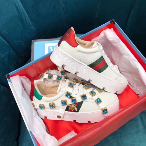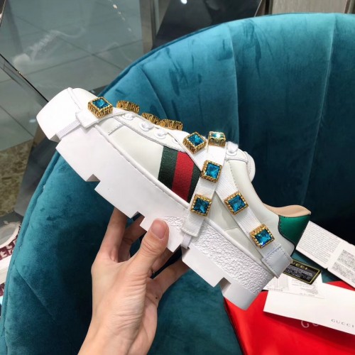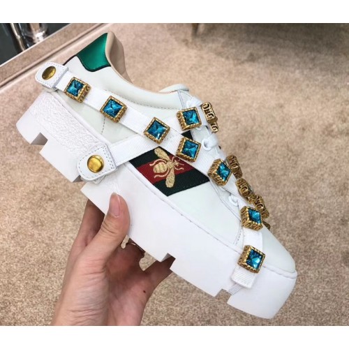 Gucci Web Bee Ace Platform 4cm Sneakers White with Removable Crystals 2019