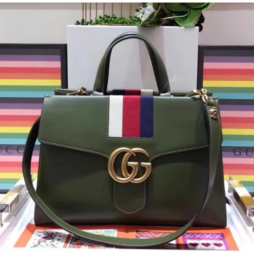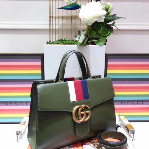 Gucci Web GG Marmont Top Handle Bag 476470 Green 2017