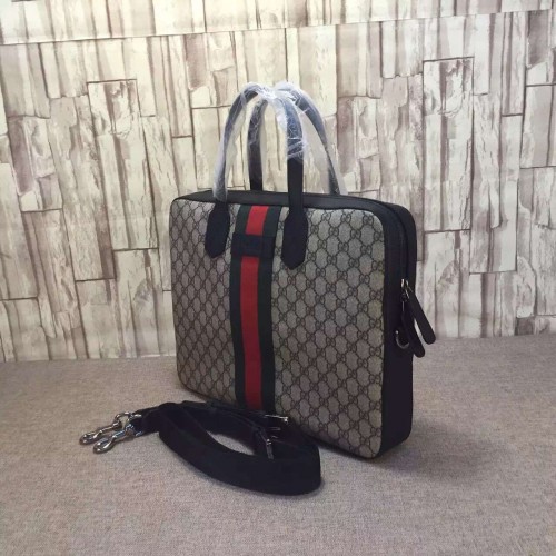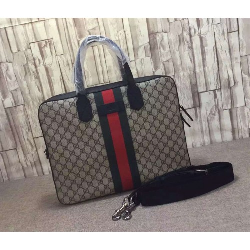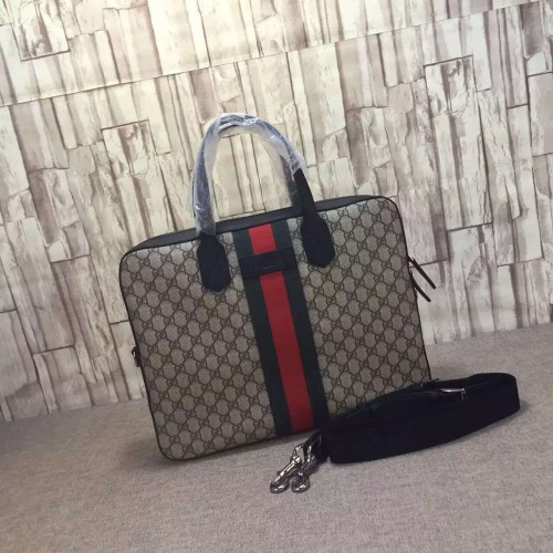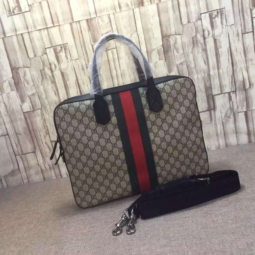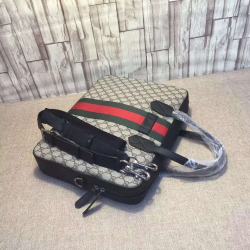 size:W41cm x H31cm x D6cma slim briefcase, equipped with double leather handles and removable shoulder strap. made in our signature gg supreme canvas with green/red/green web detail.Beige/ebony GG supreme canvas, made using an earth-conscious process with black leather trimsPalladium hardwareBlack nylon liningMade in ItalyLeather Gucci trademark labelGreen/red/green signature web detailDetachable and adjustable shoulder strap Top handles Top double zipper closureInterior zipper and smartphone pocketsW41cm x H31cm x D6cm