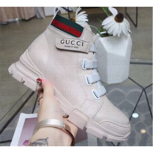Gucci Web Leather and Logo High-top Sneakers Creamy