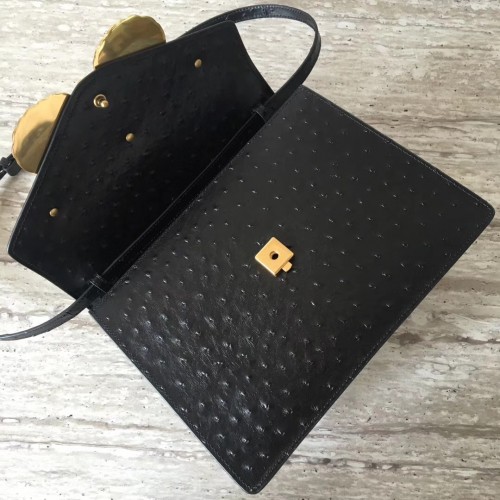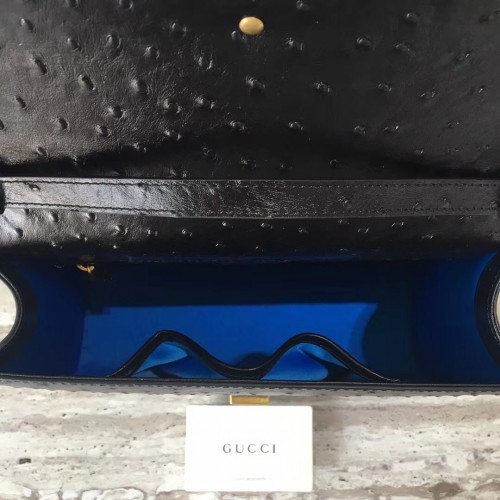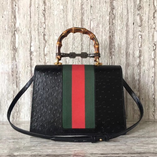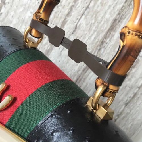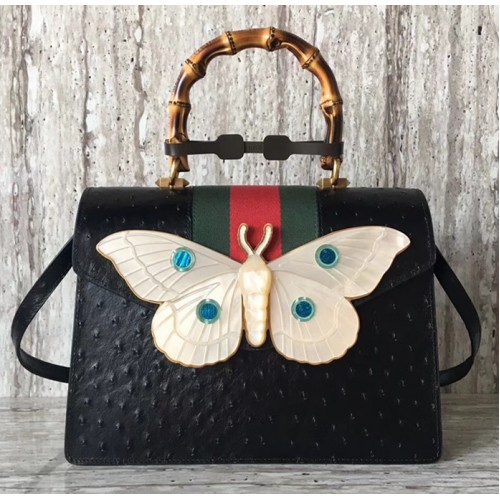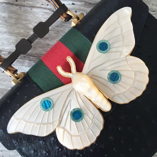 Gucci Web Moth Ostrich Pattern Medium Top Handle Bag 488691 Black 2018