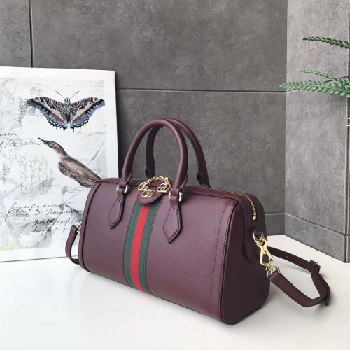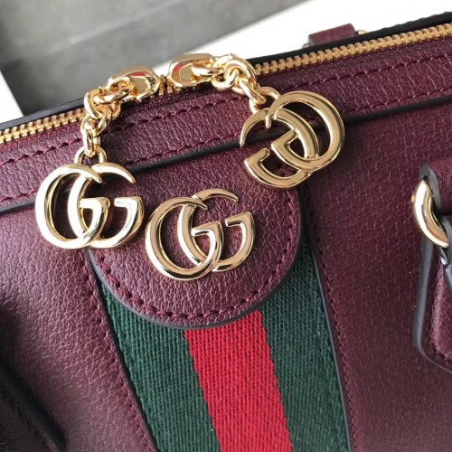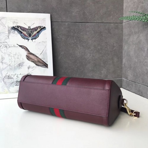 Gucci Web Ophidia Medium Top Handle Bag 524532 Leather Burgundy 2019