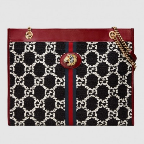 Gucci Web Rajah GG Tweed Large Tote Bag 537219 Black/White 2019
