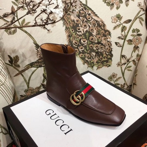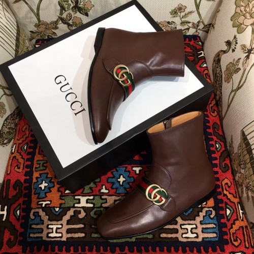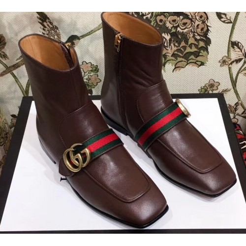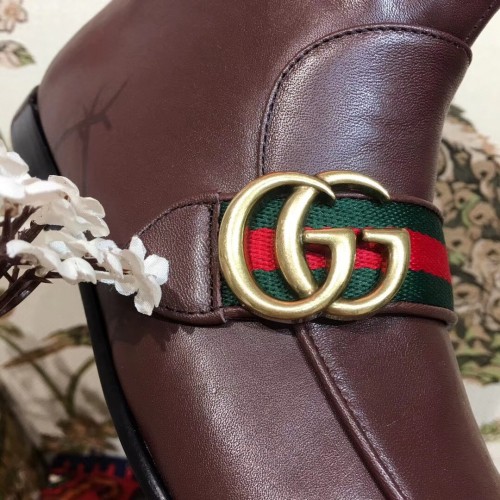 Gucci Web Strap With Double G Leather Boots Coffee 2018