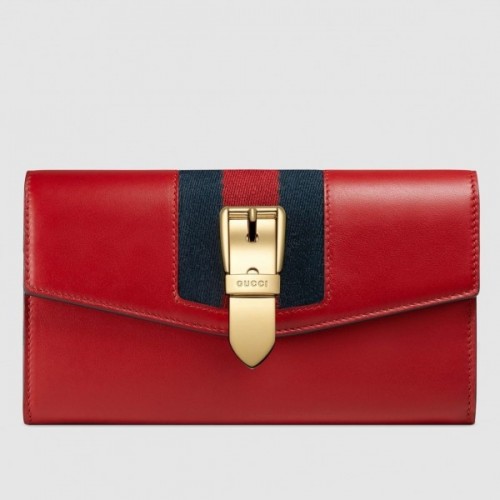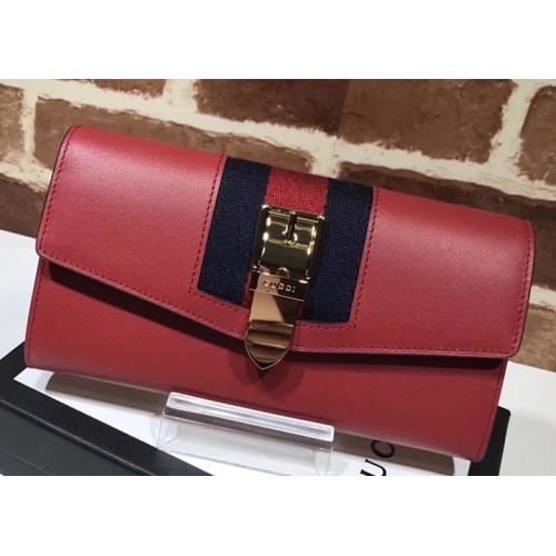 Gucci Web Sylvie Leather Continental Wallet 476084 Red 2017