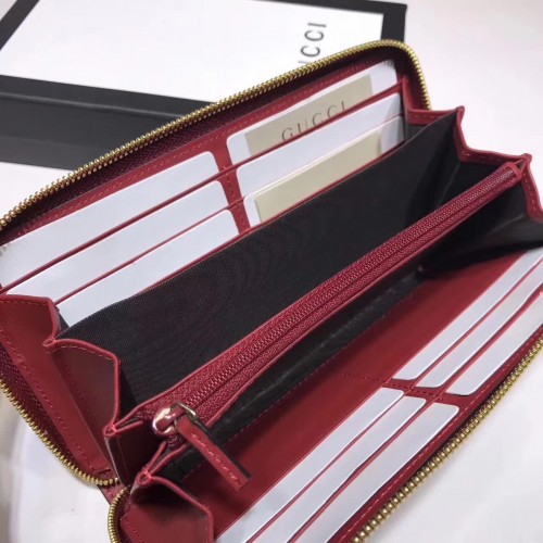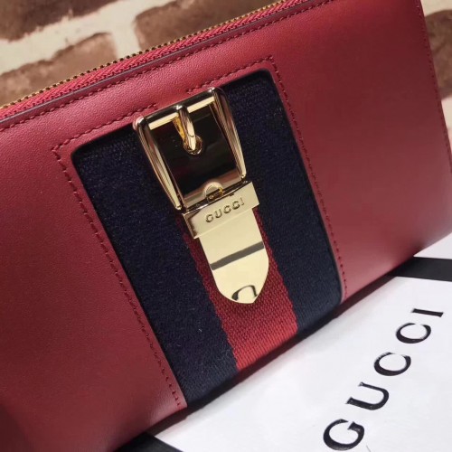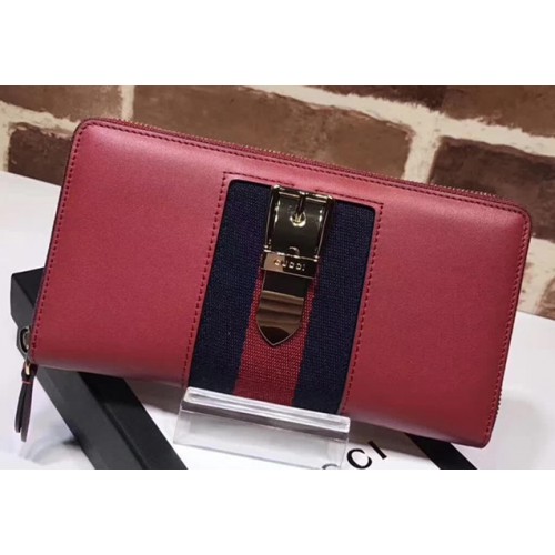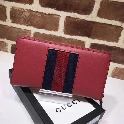 Gucci Web Sylvie Leather Zip Around Wallet 476083 Red 2017