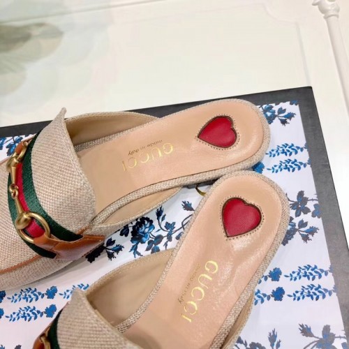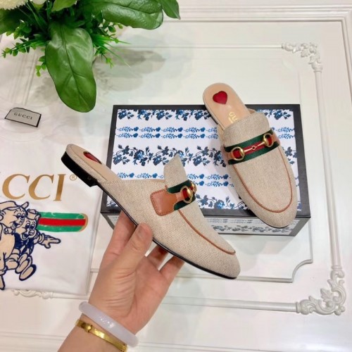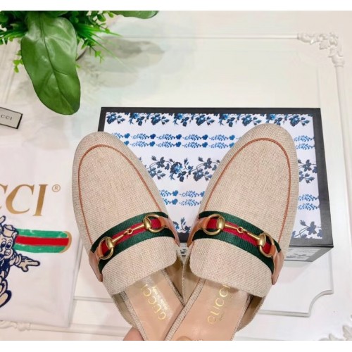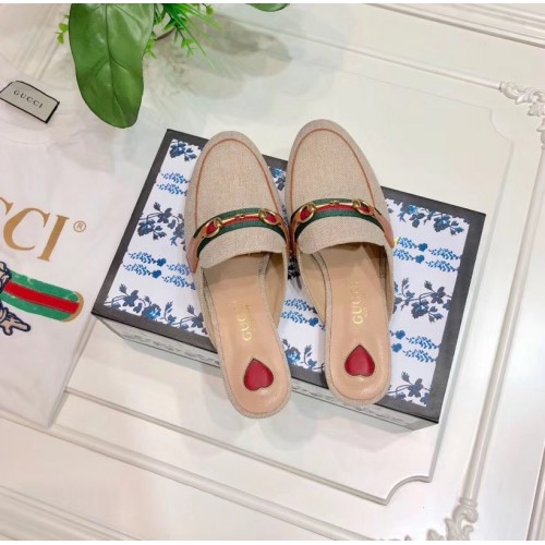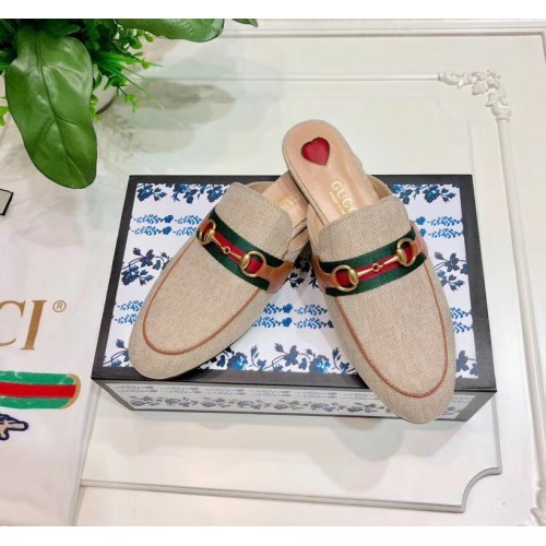 Gucci Web with Horsebit Princetown Canvas Slipper Beige/Brown 2019