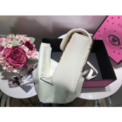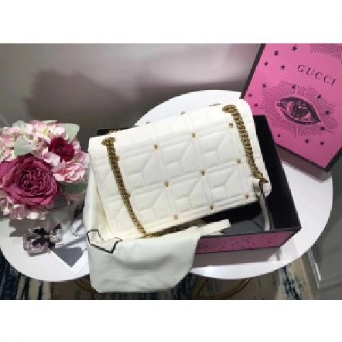 Gucci White GG Marmont Medium Studs Shoulder Bag