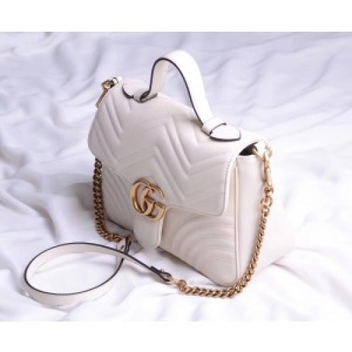 Gucci White GG Marmont Small Shoulder Bag With Handle