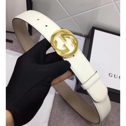 Gucci White Leather Belt with Interlocking G Buckle 370543 37MM Width Gold Hardware 2018